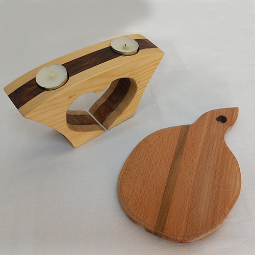 Познач всі ілюстрації, на яких зображене комбінування різних порід деревини