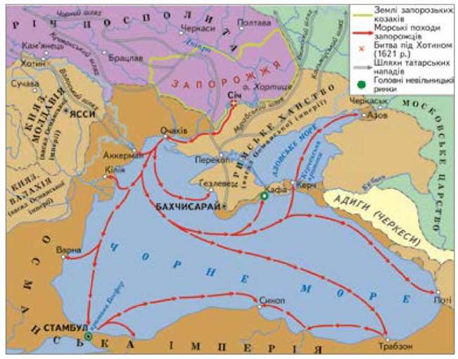 Морські походи запорозьких козаків на початку XVII ст. загострювали стосунки Речі Посполитої з: