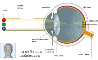 Обери правільну послідовність сприймання світла оком людини: