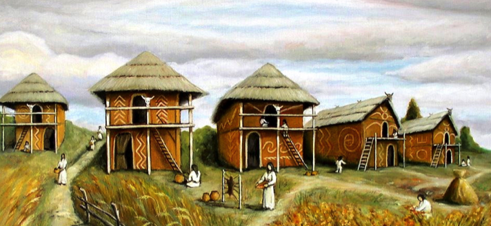 Які з перелічених слів та словосполучень характеризують трипільську культуру (виберіть 4 правильних відповіді)