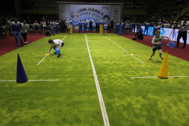 Яку назву має естафета, де учасники по черзі мають розставити м'ячики у фішки, а потім їх зібрати?