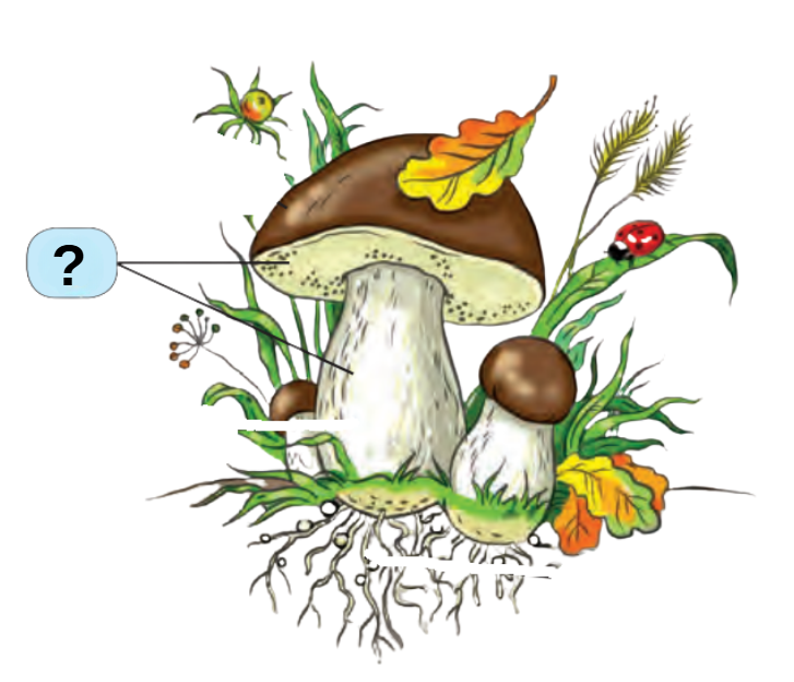 Пригадай будову гриба. Яку частину позначено на малюнку?