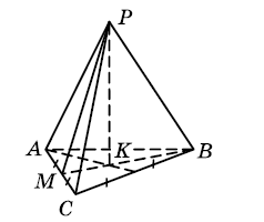 Чому дорівнює апофема правильної піраміди, якщо PK = 4 см., а KM = 3 см.