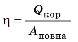 За якою формулою визначають ККД нагрівника?