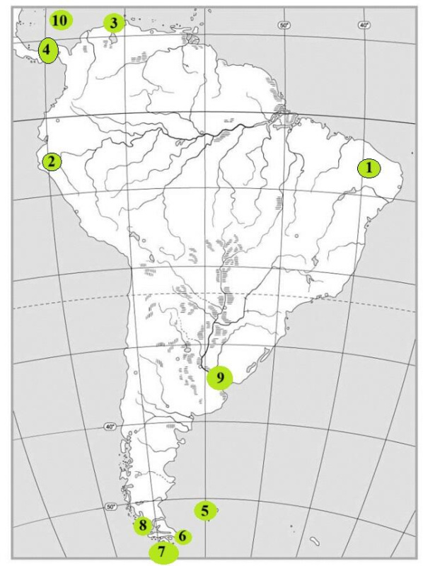 1. Магдалена; 2. Парана; 3. Оріноко; 4. Амазонка; 5. Сан-Франсіску;