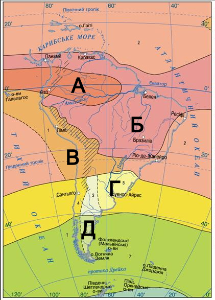 Установіть відповідність між типами клімату Південної Америки та районами їхнього поширення