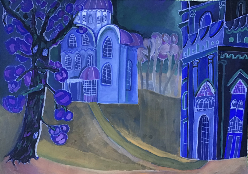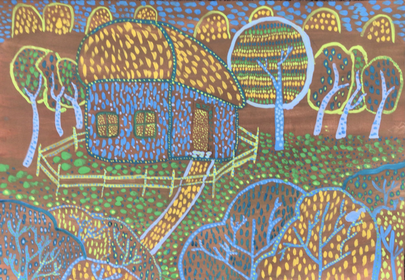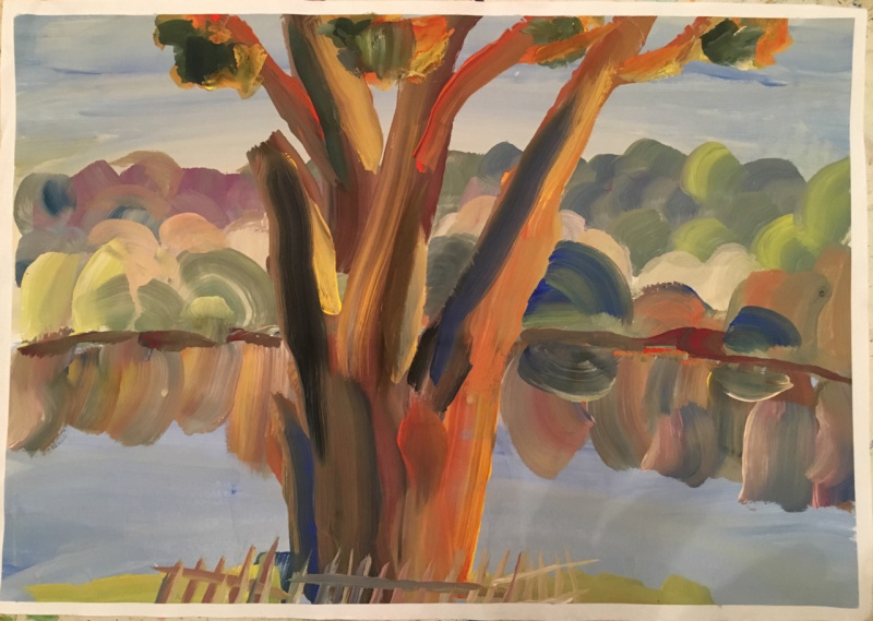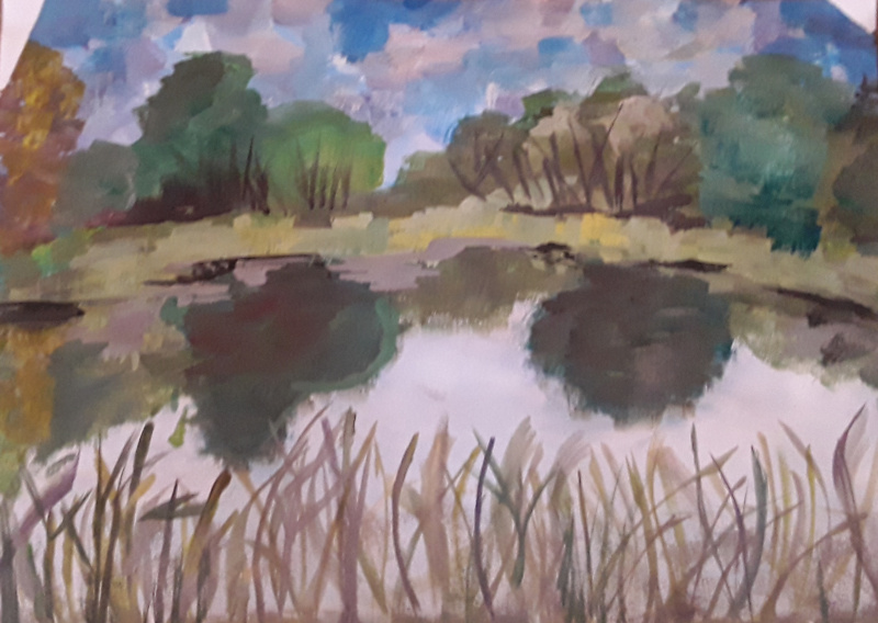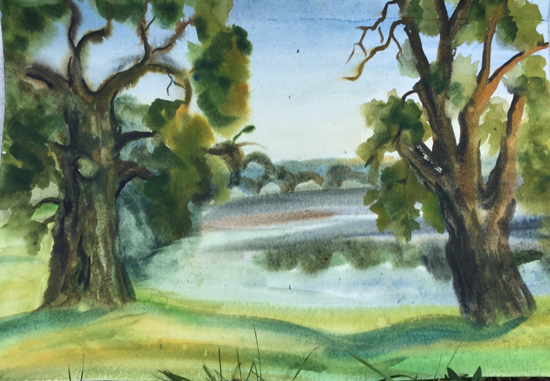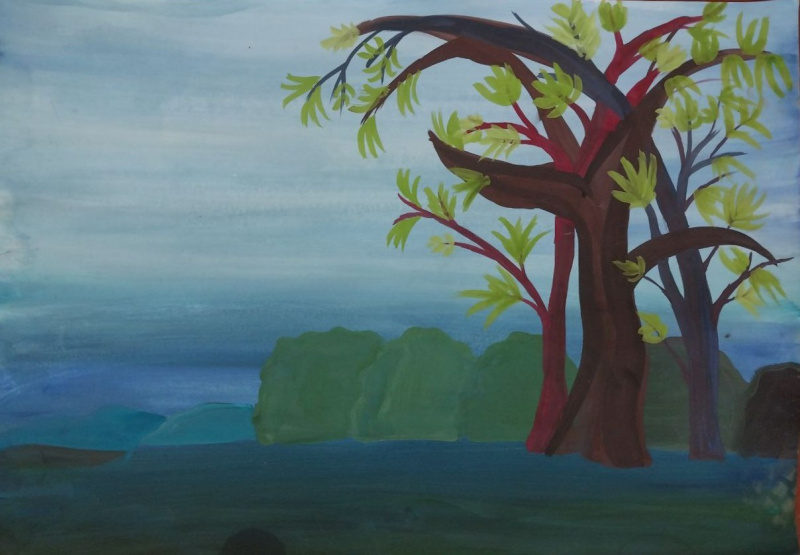 Який колір потрібно домішувати, щоб малювати на передньому плані траву та дерева у порівнянні з далеким планом?