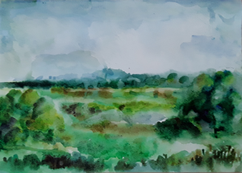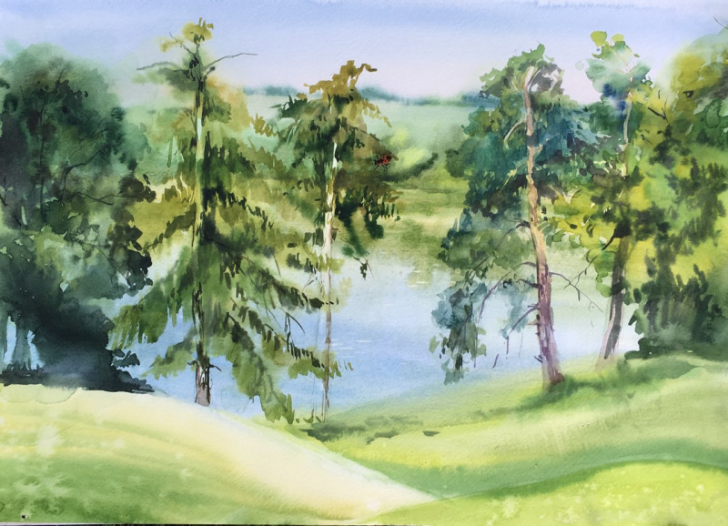 В яких пленерних роботах метою є багатство відтінків зеленого кольору?