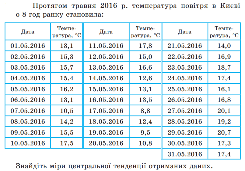 Протягом восьмигодинного робочого дня робітник щогодини виготовляв 12; 10; 8; 11; 9; 12; 10; 8 деталей. Знайдіть середнє значення даної вибірки.