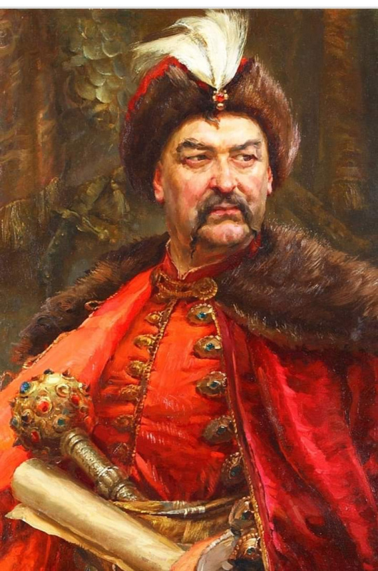 На картині зображено ватажка Національно-визвольної війни українського народу середини 17 ст....