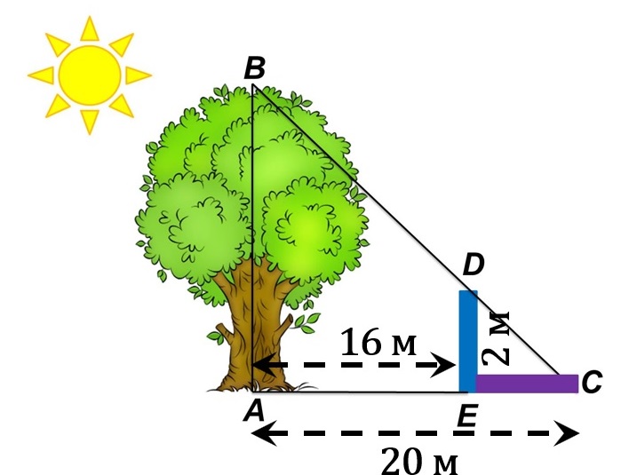 За даними, зображеними на рисунку, знайдіть висоту дерева.