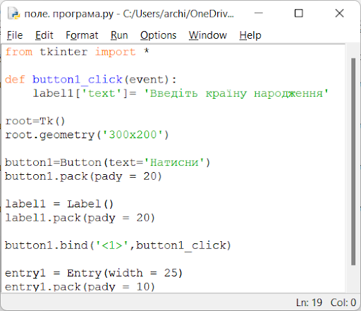 Написано текст програми для створення проєктів з вікнами, кнопками, написами, полями, подіями та їх обробниками. Який буде результат виконання тексту програми після запуску проекту?