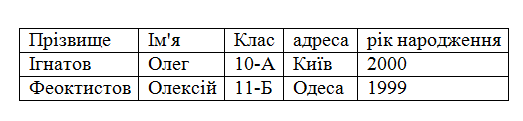 Задано структура таблиці. Яке з наведених полів може буди ключовим?