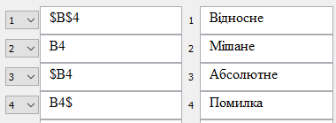 Якщо формулу =$В4 скопіювати у клітинку праворуч, то формула стане