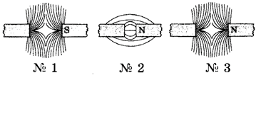 Яка з наведених картин магнітних ліній магнітного поля відповідає випадку взаємодії однойменних полюсів магнітів?