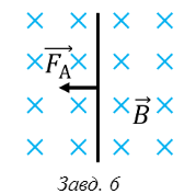 Визначте напрямок струму в провіднику, який перебуває у магнітному полі