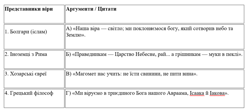 Установіть відповідність між представниками віри та їхніми словами/аргументами: