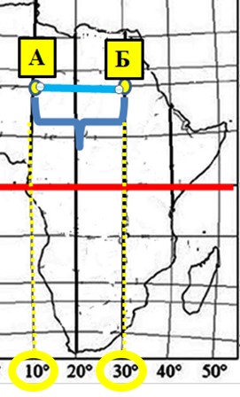 Визначте протяжність Африки по 20° меридіану за градусною системою в градусах