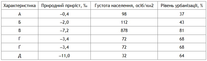 Проаналізуйте демографічну статистику за окремими областями України. Увідповідніть області України з їх демографічними характеристиками.