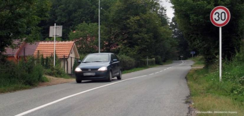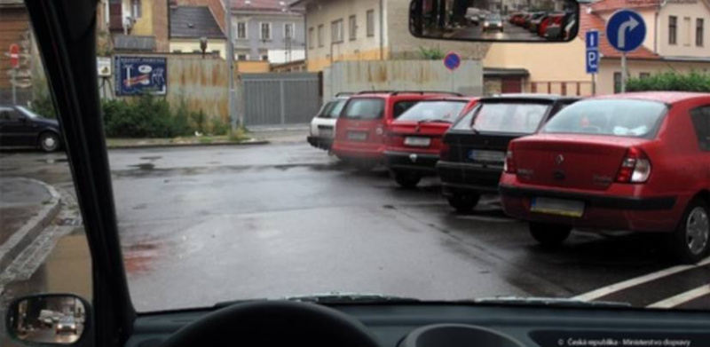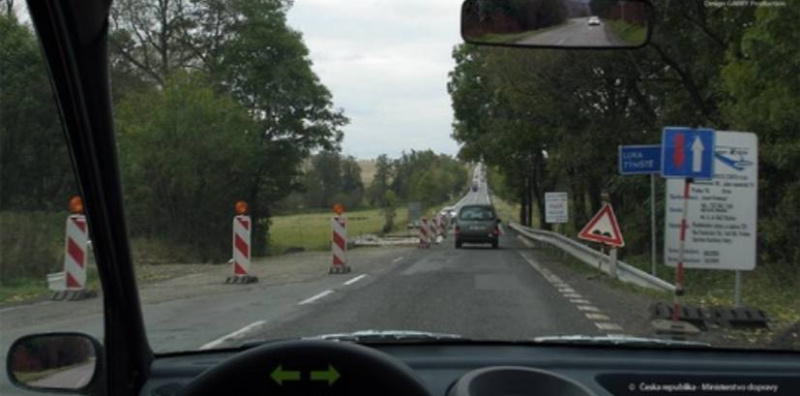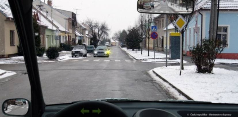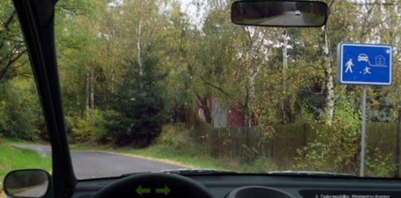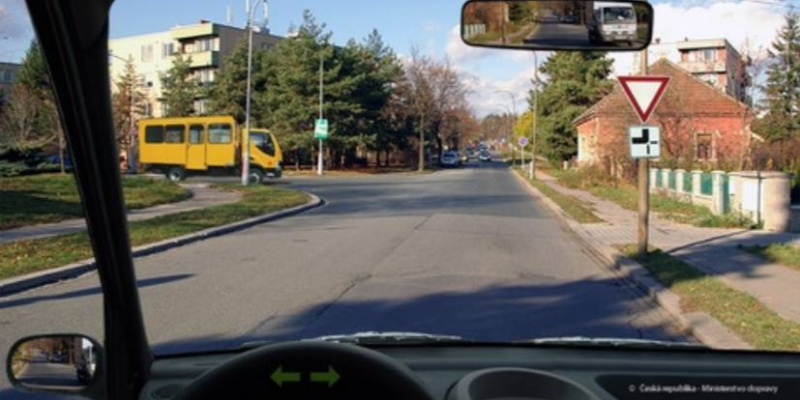 Ridic vozidla z výhledu na nejblizsí krizovatce za první dopravní znackou: