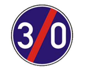 Vyberte dopravní znacku, která oznacuje konec úseku pozemní komunikace s nejnizsí dovolenou rychlosti: