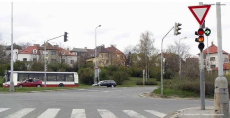 Na vyobrazené krizovatce musíte jako ridic vozidla z výhledu: