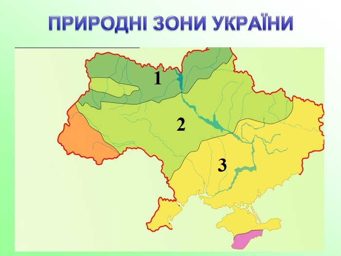 Обери правильну відповідність за картою природних зон України. Які природні зонм розміщені під №1,2,3?