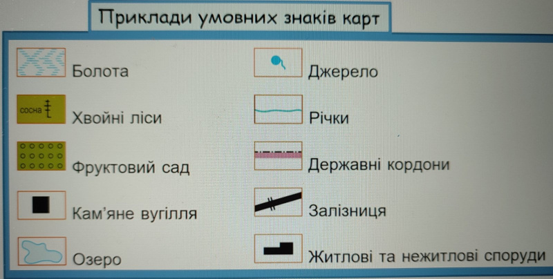 Позначення, які застосовують на картах або планахдля зображення різних об'єктів