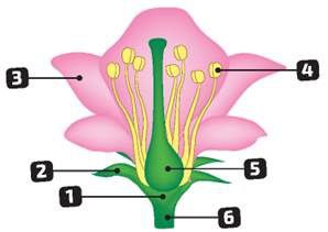 (Гр1) Підпишіть частини квітки, що позначені цифрами 1, 3, 5