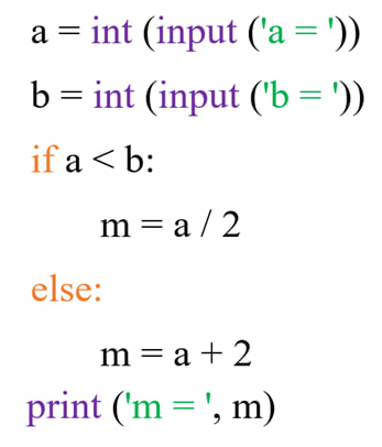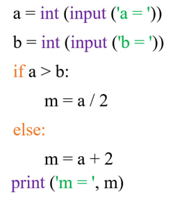 Запиши результат виконання поданої програми, якщо а = 8, b = 10. m =