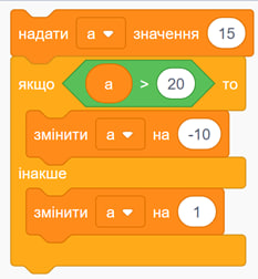 У середовищі Scratch під час виконання зображеного скрипту змінна а набуде значення