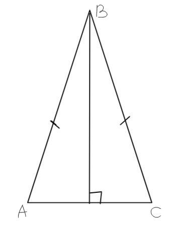 На малюнку зображено трикутник АВС, де АВ=ВС. Як називаються сторони АВ і ВС?
