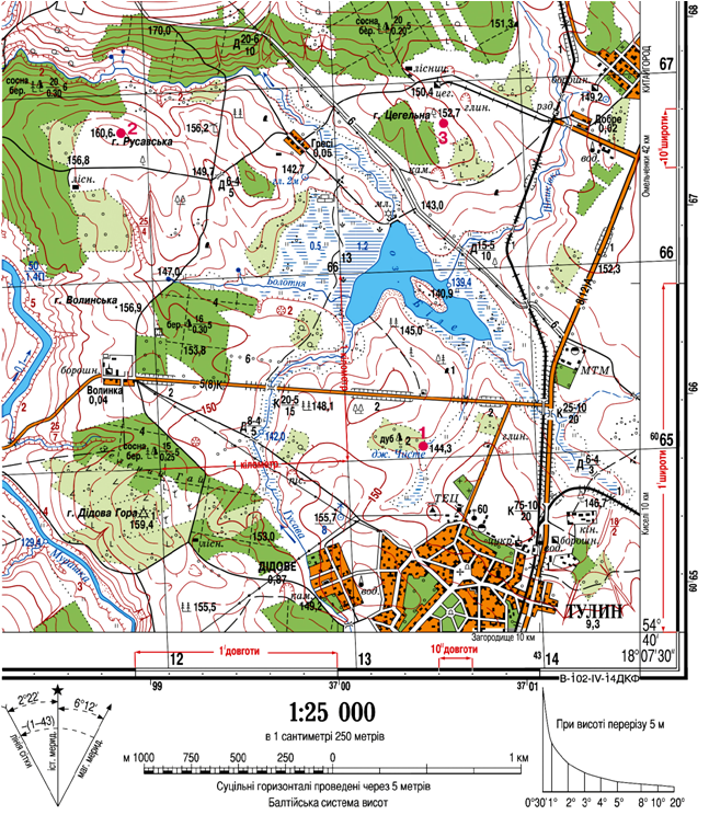 Визначте географічні координати джерела Чисте ( на карті позначено цифрою 1, червоним коліром, підручник с.31).