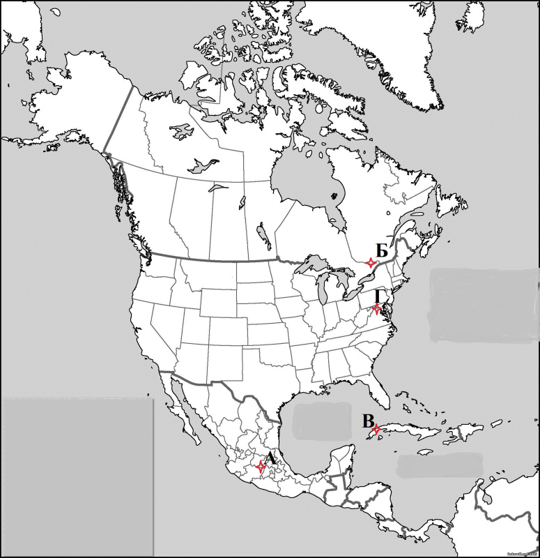 Встановіть відповідність між назвою столиці країни та буквою, якою вона позначена на карті.