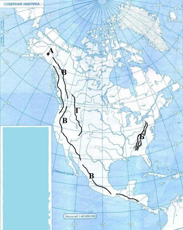 Встановіть відповідність між назвою гір та буквою, якою вони позначені на карті.