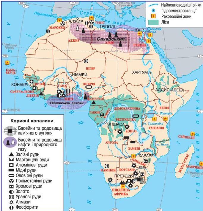 1. Визначте країни видобувачі та центри переробки Сахарського нафто-газового басейну.