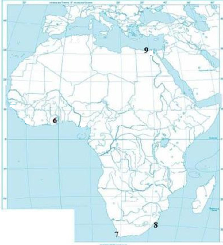 Встановіть відповідність між цифрами на карті та найбільшими морськими портами, з яких відбувається експорт мінеральної сировини та та продуктів її первинної переробки: