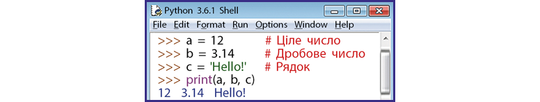 Скільки змінних створено у середовищі програмування IDLE Shell Python?