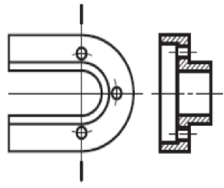 Чи треба заштриховувати на фронтальному розрізі даного предмета два трикутники, позначені стрілками?