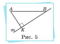 З точки А на пряму m провели похилу (див.рисунок). Яка точка є основою перпендикуляра?