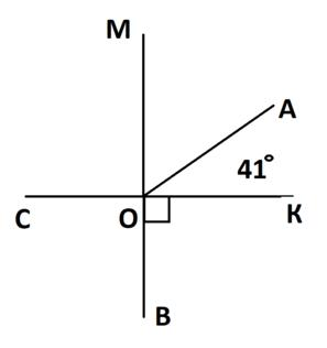 Дано прямі СК ⊥ МВ. Кут ∠АОК=41º. Знайти ∠АОС.