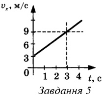 За графіком залежності швидкості мотоцикліста від часу визначте переміщення мотоцикліста за перші 3 с його руху. (2 бали)