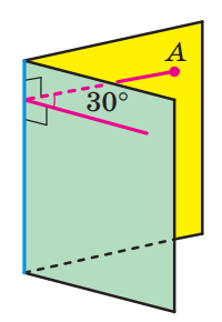 Двогранний кут дорівнює 30⁰. На одній із граней дано точку, яка знаходиться на відстані 8√3 см від ребра двогранного кута. На якій відстані знаходиться ця точка від другої грані двогранного кута?