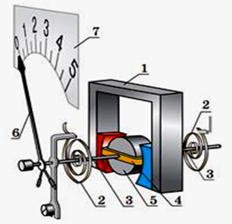 Назвіть основні елементи вимірювального механізму приладу магнітоелектричної системи:
