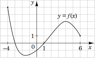 На рисунку зображено графік функції y=f(x), визначеної на проміжку [-4;6]. Укажіть найбільше значення функції f на цьому проміжку.