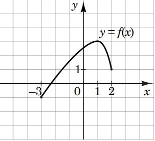 На рисунку зображено графік функції y=f(x), визначеної на проміжку [-3;2]. Укажіть точку екстремуму функції y=f(x+3)-2