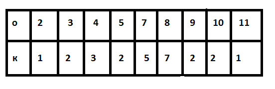 В таблиці представлено результати контрольної роботи в 9 класі. Знайдіть середній бал, отриманий за контрольну роботу, якщо у верхньому рядку записані оцінки, а в нижньому - їх кількість