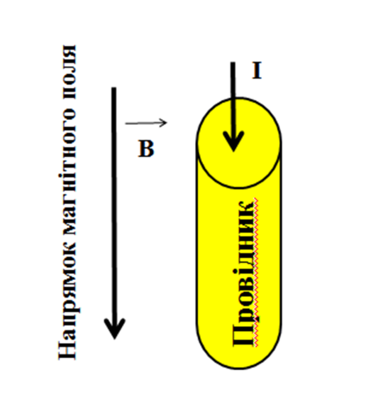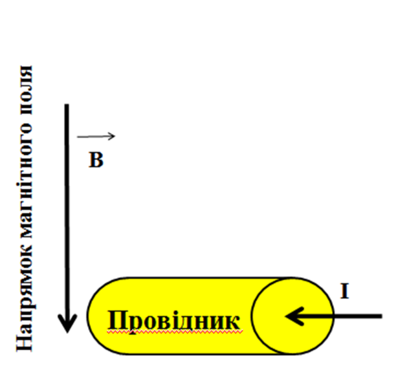Визначте напрям дії сили Ампера на провідник (див. малюнок)