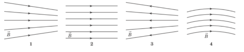 Укажіть рисунок, на якому правильно зображено розташування магнітних ліній однорідного поля.