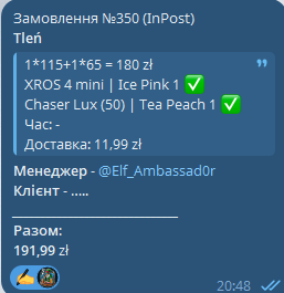 Як записується замовлення з безкоштовною доставкою (InPost) в таблицях?